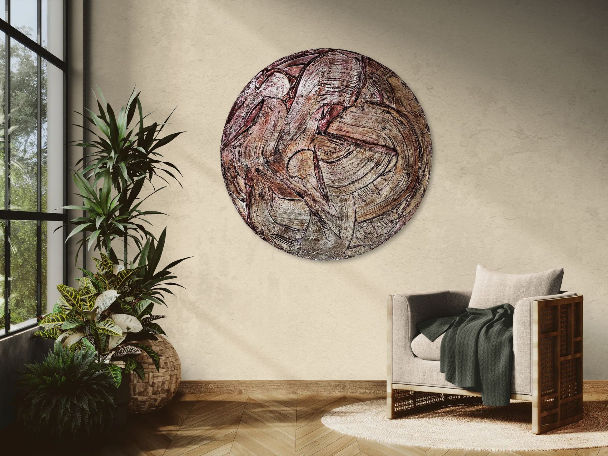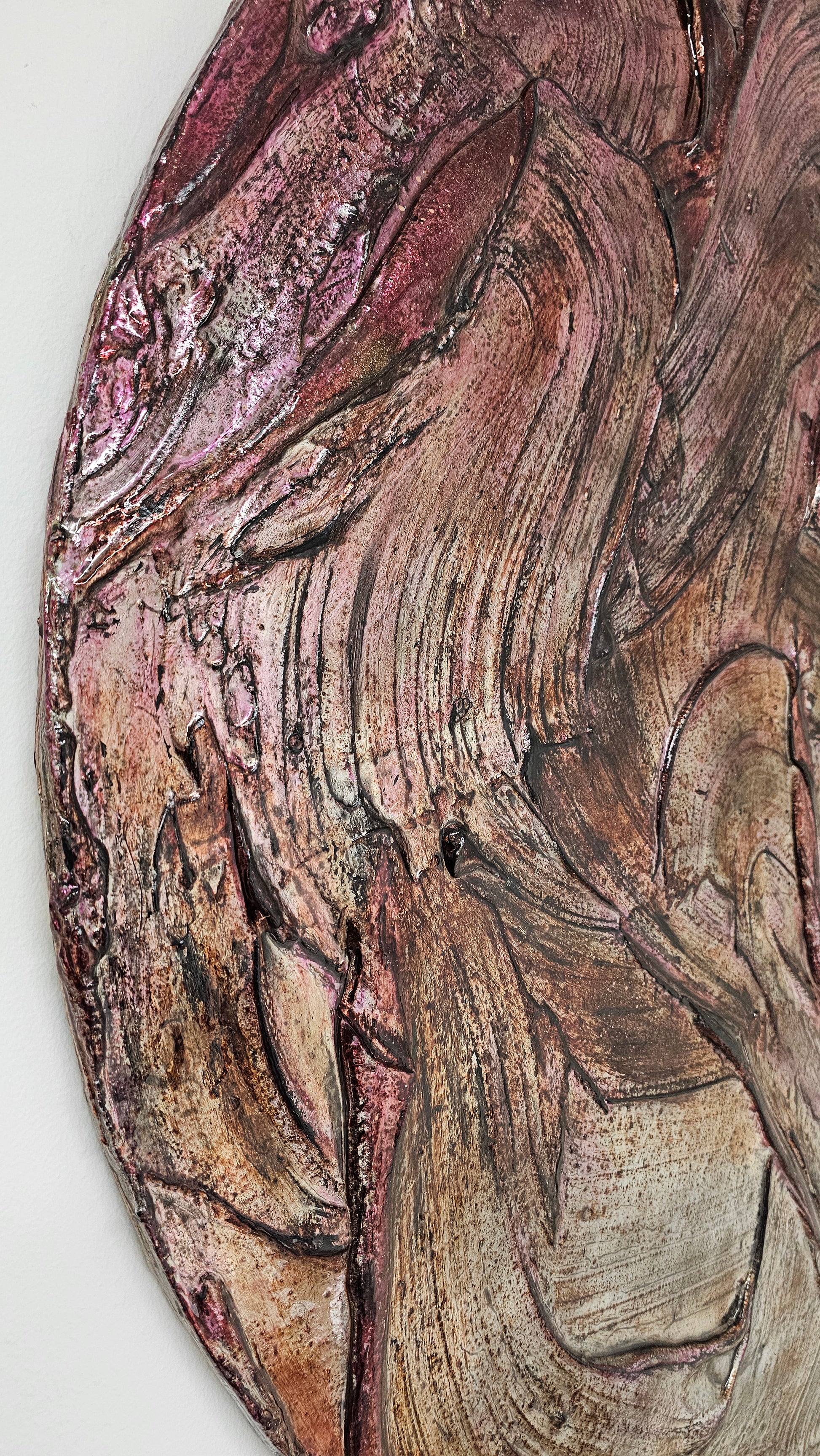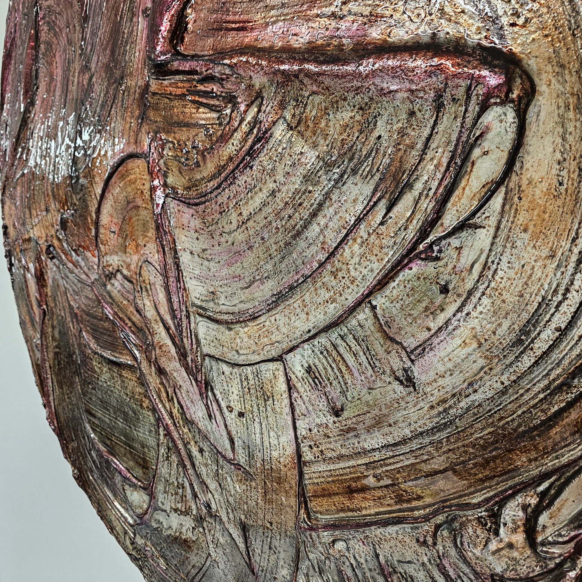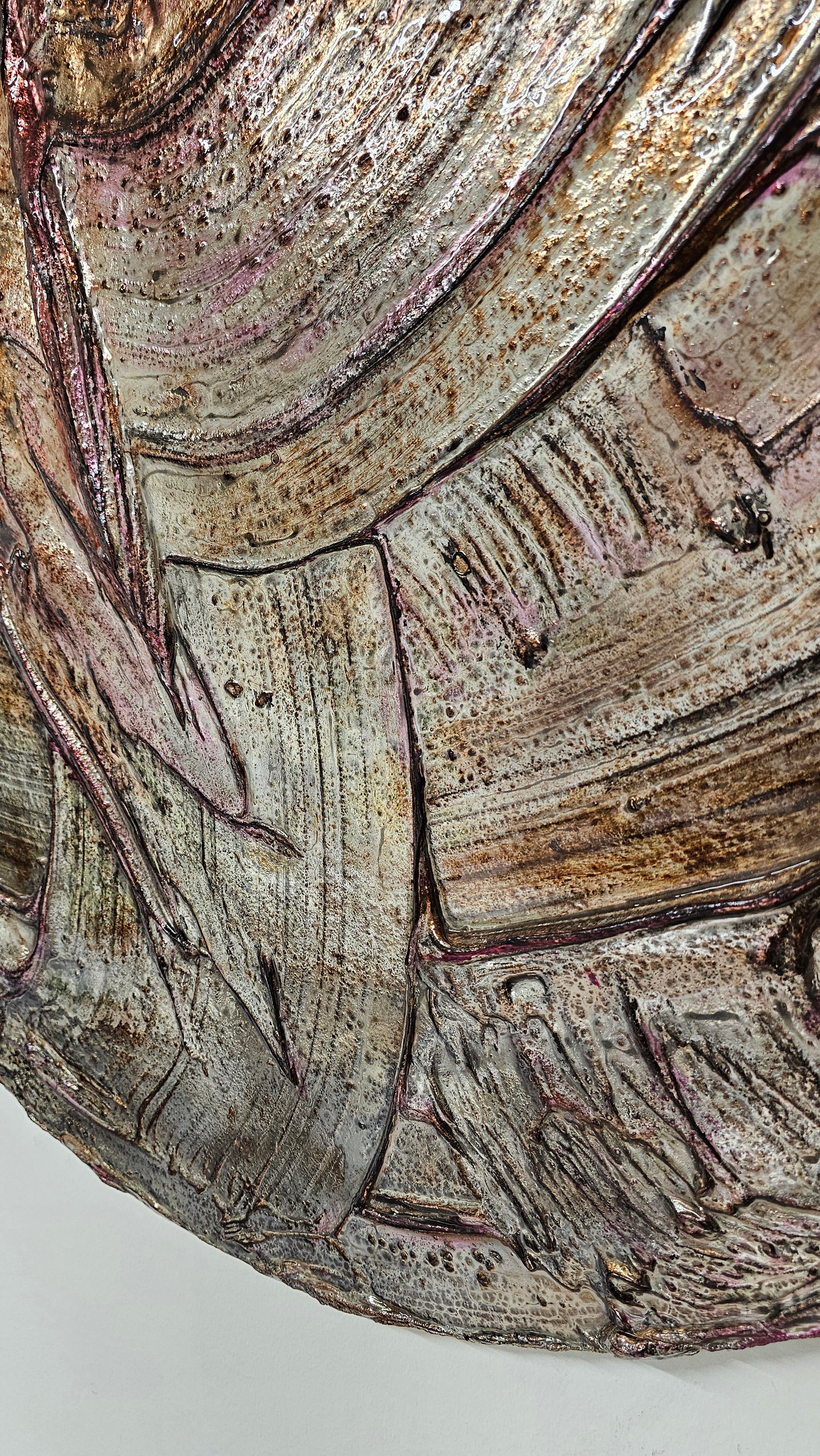 Holzträger, Strukturputz, Echtsilberveredelung (CHROM), Harz, Mixed Media